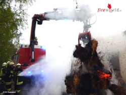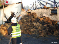 Das oft noch brennende Stroh wurde mit den Kränen abgetragen, mit dem Teleskoplader auf Kipper verladen und auf ein naheliegendes Feld gebracht wo es kontrolliert abbrennen konnte. Um ca. 21:00 Uhr konnte die Feuerwehr Pinkafeld nach fünf Stunden wieder einrücken. Die Feuerwehr Pinkafeld bedankt sich bei allen beteiligten Einsatzkräften für die gute Zusammenarbeit.