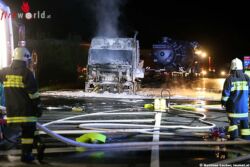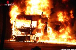 Oö: Sattelzugfahrzeug eines Schwertransportes in Vollbrand