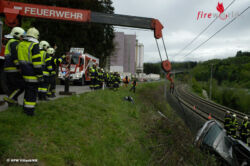 Ktn: Neben Bahngleis abgestürzt und schwerst im Fahrzeug eingeklemmt