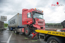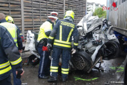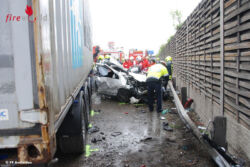 Eine Person musste von der Feuerwehr aus dem völlig deformierten Fahrzeug bereit werden. Wie es zu dem Unfall zwischen einem Lastwagen und dem Auto gekommen ist, ist noch nicht bekannt. Durch den Unfall ist es auf der Autobahn zu massiven Verkehrsbehinderungen gekommen.