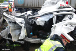 Oö: Auto bei Unfall auf der Autobahn völlig zermalmt
