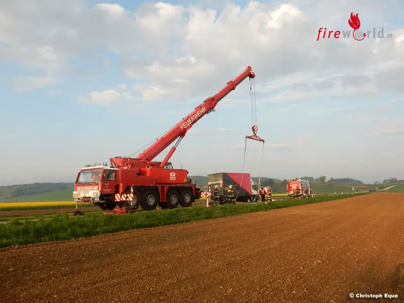 Aus unbekannter Ursache verlor ein Lkw Fahrer die Kontrolle über sein Fahrzeug, kam ins Schleudern und kippte letztendlich um. Eine große Menge Betriebsflüssigkeiten sind bei diesem Sturz ausgetreten. Für die Bergung des Lkw musste ein Spezialkranfahrzeug der Feuerwehr St.Pölten – Stadt angefordert werden.
