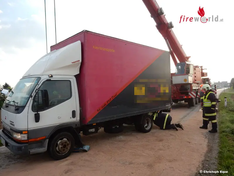 Nö: Umgestürzter Klein-Lkw macht Kraneinsatz erforderlich