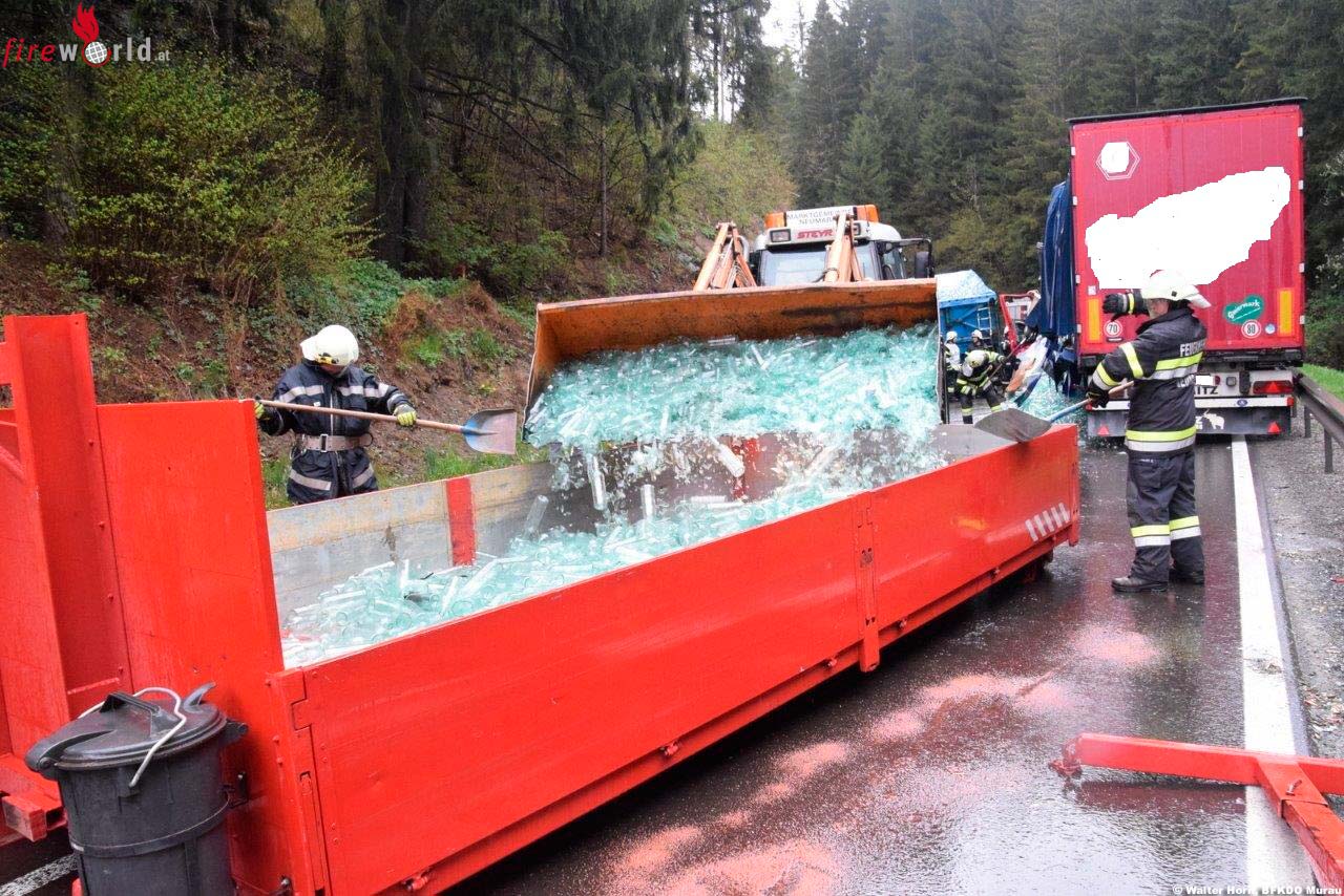 NEUMARKT (STMK): Am Nachmittag des 30. April 2015 kam es gegen 16 Uhr auf der B 317 im Gemeindegebiet von Neumarkt in der Steiermark zu einer Kollision zweier Lastkraftwagen.