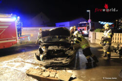Wenige Minuten später trafen bereits neben dem Roten Kreuz 15 Feuerwehrmänner der Feuerwehr Spielberg am Unglücksort ein. Ein mit vier Personen besetzter Pkw kollidierte aus nicht näher bekannter Ursache mit einem Betonzaun eines Einfamilienhauses. Durch die Wucht des Aufpralles wurde ein Teil des Zaun aus der Verankerung gerissen und weggeschleudert.