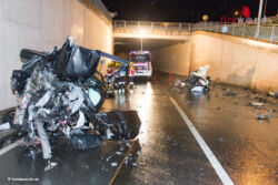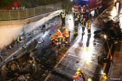Bei Eintreffen der Einsatzkräfte war der Fahrzeuglenker noch im Fahrzeug eingeklemmt, die Unfallstelle glich einem Schlachtfeld. Nach Absprache mit dem Notarzt, entschied man sich für eine Crashrettung mittels hydraulischen Rettungsgerät. Der Lenker wurde mit Verletzungen unbestimmten Grades in ein umliegendes Krankenhaus abtransportiert. Aufgrund der umfangreichen Aufräumarbeiten war der Tunnel rund drei Stunden gesperrt.