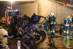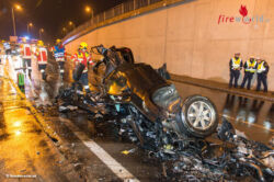 m 20:32 Uhr wurden die Freiwilligen Feuerwehren Pasching und Hart von der Landeswarnzentrale in Linz alarmiert. Ein Pkw prallte aus bisher ungeklärter Ursache gegen die Mauer des Tunnelportales. Aufgrund des starken Anpralles wurde das Fahrzeug regelrecht in zwei Teile gerissen.