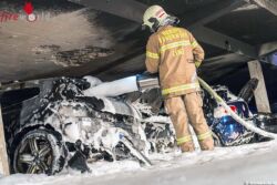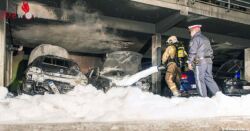 Bei der Personsdurchsuchung wurde die Munition einer Leuchtpistole vorgefunden. Die Feuerwehr konnte durch das rasche Löschen ein Übergreifen auf ein Wohnhaus verhindern. Der starke Rauch breitete sich auch im Stiegenhaus aus und wurde von der Feuerwehr mittels Hochdrucklüfter beseitigt. Im Haus wohnen rund 26 Personen, davon wurde niemand verletzt. Insgesamt wurden sechs Autos zum Teil schwer bzw. total beschädigt. Der am Gebäude entstandene Schaden kann derzeit noch nicht eingeschätzt werden.