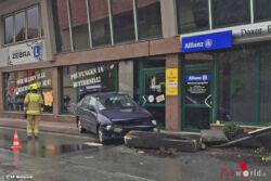 MITTERSILL (SBG): Die Feuerwehr Mittersill wurde am Sonntagmorgen, 3. Mai 2015, zu einem Verkehrsunfall auf der B165-Gerlos Straße durch die LAWZ Salzburg alarmiert. Vor Ort konnte durch Einsatzleiter HBI Roland Rauchenbacher festgestellt werden, dass ein Fahrzeug von der Straße abgekommen ist und in Folge in ein Geschäftsgebäude schlitterte.