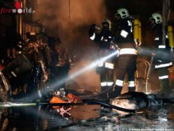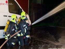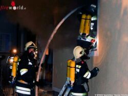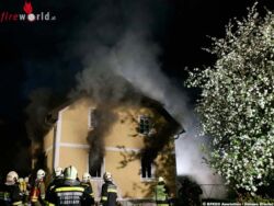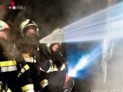 Glücklicherweise verfügt dieser angebaute Raum auch über mehrere Fenster, durch welche ein umfassender Löschangriff – zum Teil mit Schaum – vorgenommen werden kann. Währenddessen wurde der Wohnbereich mit Überdrucklüftern belüftet, um zu verhindern, dass der Brandrauch auch in diese Räumlichkeiten eintritt. Sofort erkennt der Einsatzleiter, dass hier zahlreiche Atemschutztrupps benötigt werden und erhöht die Alarmstufe, woraufhin weitere drei Feuerwehren alarmiert wurden.