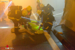 Insgesamt wurden in mehreren Angriffswellen 770m Schlauch im Tunnel gelegt und dabei 12.000l Löschwasser aufgebracht. Um die Realität des Ernstfalls abzubilden, wurde massiv Kunstrauch eingesetzt. Das Vorgehen ist bei schlechter Sicht ungleich schwieriger. Der eingeschlagene Weg mit einem einheitlichen Vorgehen im Tunnel ist richtig und ist weiter zu intensivieren.
