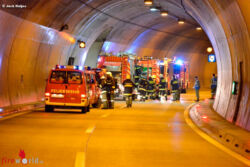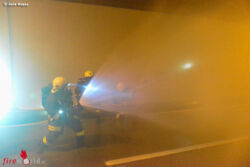 Oö: 15 Feuerwehren üben im Kremsursprung-Tunnel auf der A9 in Micheldorf