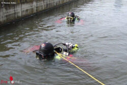 Die Feuerwehreinsatztaucher des Bereichswasserdienststützpunktes Apfelberg rüsteten sich mit Trockentauchanzügen, Tauchflaschen und Maske aus und begaben sich in das kühle Naß des Klärbeckens um den verloren gegangen Schlauch im fünf Meter tiefen Abwasser zu suchen. Nach etwa einer halben Stunde konnte der verloren gegangene 35 Kilogramm schwere Schlauch gefunden und die Anlage wieder in Betrieb genommen werden so Einsatzleiter Brandmeister Franz Karner.