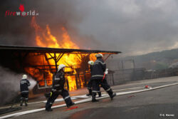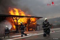 Beim Eintreffen der ersten Einsatzkräfte stand bereits ein gutes Drittel in Vollbrand. Zwei in der Halle abgestellte Pkw konnten von den Einsatzkräften nicht mehr aus dem Objekt geholt werden, sie fielen den Flammen zum Opfer. Insgesamt stehen sieben Feuerwehren (sechs Feuerwehren aus dem Bereichsfeuerwehrverband Feldbach und eine Feuerwehr aus dem BFV Radkersburg) mit 85 Mitgliedern und zwölf Fahrzeugen im Löscheinsatz.