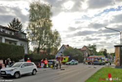 Gegen 7.45 Uhr sind im Kreuzungsbereich der Heinrich-Wieland-Straße und der St.-Veit-Straße insgesamt drei Fahrzeuge kollidiert. Von der Integrierten Leitstelle wurden die Feuerwehr, zwei Rettungswagen sowie der zufällig in der Nähe anwesende Kindernotarzt zur Einsatzstelle alarmiert. Bei Eintreffen der Rettungskräfte waren die Insassen bereits alle aus ihren Fahrzeugen befreit.