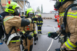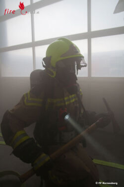 Für den Löschangriff wurden mehrere C-Rohre, sowohl im Innen- als auch im Außenangriff eingesetzt. Nach dem Kommando „Brand unter Kontrolle“ wurde die Halle mittels mehrerer Turbolüfter entraucht. Der betroffene Müllwagen wurde ins Freie gefahren, entleert und das Brandgut endgültig abgelöscht. Unter den zahlreichen Übungsbeobachtern befanden sich, neben Vertretern des Stadtservice Korneuburg, auch Bürgermeister Christian Gepp mit Gattin und Vizebürgermeister Thomas Pfaffl.