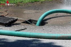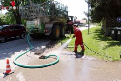 Vorher wurde noch der Kanal abgedichtet und mit einem Vakuumfass wurde das kontaminierte Wasser aufgesaugt und entsorgt. Nach mehr als drei Stunden und den Aufbringen von 4500 Liter Wasser konnte die Feuerwehr wieder einrücken.
