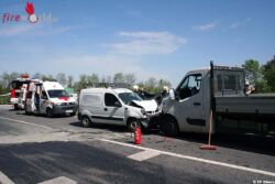 OLLERN (NÖ): Am 8. Mai 2015, um 10.39 Uhr wurde die Feuerwehr Ollern zu einem Verkehrsunfall auf den Riederberg alarmiert. Ein Pritschenwagen und ein Pkw stießen im Bereich der Fuchskurve frontal zusammen. Beide Lenker wurden dabei verletzt, einer davon schwer.