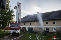 Angenommen wurde der Dachstuhlbrand eines Vierkanthofes bzw. die mögliche Vorgehensweise im realen Brandfall. „Bis zur Sicherstellung der Löschwasserversorgung gilt das primäre Ziel dem Schützen des nicht betroffenen Teils des Bauernhofes zwischen zwei Brandmauern. Ein direkter Löscheinsatz ist im Erststadium noch nicht zielführend, da man sonst recht schnell mit zwei leeren Tanklöschfahrzeugen dasteht und einem das Feuer dann erst recht davonläuft“, erklärt der erste Kommandant-Stellvertreter der Feuerwehr Alkoven, Hauptbrandinspektor Markus Unter. Auch auf das im Feuerwehr-Chargon als Dachwaschen bezeichnete Aufbringen von Löschwasser auf eine geschlossene Dachfläche sollte tunlichst vermieden werden, da es außer dem Verbrauch des kostbaren Nass nichts bringt, viele Rohre ohne Plan vorzunehmen.