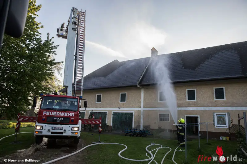 Taktisch überlegt wurde auch, beim Vorhandensein einer sicheren Wasserversorgung einen massiven Wasserschlag auf den Brandherd aufzubringen und dabei das Löschwasser mit geringen Mengen an Schaummittel zu vermengen. Somit erfolgt der Einsatz als Netzmittel, was auch das Eindringen in das im Brandbereich gelagerte Stroh ermöglicht.