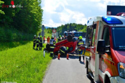 Der Lenker ist unbestimmten Grades verletzt, wird von Feuerwehr- und Rettungssanitätern erstversorgt und schließlich ins Krankenhaus transportiert. Die Feuerwehren Mooskirchen und Steinberg sicherten die Unfallstelle ab, bauten den Brandschutz auf und haben das Unfallfahrzeug aus dem Gefahrenbereich geborgen.
