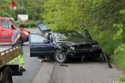 D: Pkw rammt einen Stromkasten und zwei Bäume