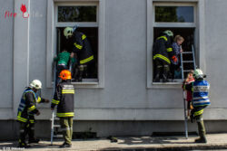 Kurz nach der großen Pause ging es dann rund in der Schule. Brandalarm wurde ausgelöst und so mussten alle Klassen unverzüglich die Schule verlassen. Die Feuerwehren Ohlsdorf und Aurachkirchen wurden zur Schule alarmiert. Nach einer Erkundung wurde eine Rauchentwicklung festgestellt und Atemschutzträger in das Gebäude geschickt. Mehrere Klassen konnten diese nicht alleine verlassen und so wurden die unteren Klassen mit Hilfe von Leitern aus der Schule gebracht. Andere Klassen wurden unter Aufsicht der Einsatzkräfte aus der Schule begleitet.