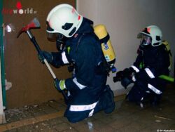 Besonders das Vorgehen mit einem Schlauchkorb über ein Stiegenhaus und der Löschangriff mit einem Schlauchpacket wurden geübt. Jeder anwesende ATS-Träger musste diese Station absolvieren. Außerdem wurde bei einem gedachten Kellerbrand ein Raum von außen bis unter die Decke mit Mittelschaum geflutet. Auch das gewaltsame aufbrechen von Türen unter Atemschutz mittels einer Axt wurde auf verschiedene Methoden geprobt.