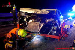 Am Unfallfahrzeug entstand erheblicher Sachschaden, es musste unter Einsatz einer Abschleppachse der Feuerwehr von der Autobahn entfernt werden.