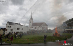 Verstärkung aus den Gemeinden Oberalm, Puch, Hallein, St. Koloman, Abtenau und Scheffau, ebenfalls mit historischen Fahrzeugen und Geräten trifft ein und gemeinsam kann der „Brand“ unter Kontrolle bracht werden und schließlich „Brand aus“ gemeldet werden.
