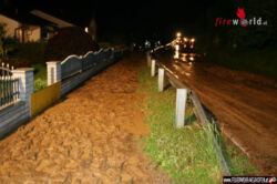 NEUHOFEN AN DER KREMS (OÖ): Die Feuerwehr Neuhofen wurde am 14. Mai 2015 um 01.00 Uhr zu einer massiven Vermurung auf der B 139 zwischen der Aviva Tankstelle und der Kreuzung mit der Grundstrasse alarmiert.