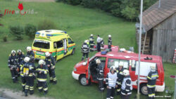 Übungsannahme war ein Brand auf dem Landwirtschaftlichen Anwesen von Familie Oswald. Außerdem wurden mehrere Personen im landwirtschaftlichen Objekt vermisst. Sofort nach Eintreffen am Einsatzort erkundete Übungs-Einsatzleiter OBI Gerald Fabian die Lage und wies die nachkommenden Kameraden mit ihren Fahrzeugen ein.