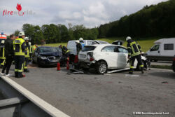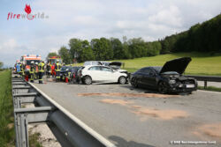TEISENDORF (BAYERN): Am Sonntagnachmittag, 17. Mai 2015, hat sich gegen 15.50 Uhr auf der A8 am Teisenberg in Fahrtrichtung München kurz nach der Zufahrt Hub eine Massenkarambolage mit sieben Pkw ereignet, bei der fünf Menschen verletzt wurden.