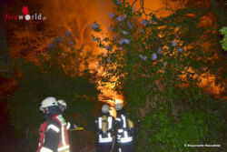 Als die ersten der ca. 50 eingesetzten Feuerwehrleute der Ortswehren Bargstedt und Harsefeld an der Einsatzstelle eintrafen, brannte die ca. 20 x 5 Meter große, als Lagergebäude für Gartenmöbel, Gartengeräte, Feuerholz, Paletten und einen Rasenmähertraktor genutzte Scheune bereits in voller Ausdehnung. Das brennende Gebäude stand ca. 10 Meter vom Wohnhaus im hinteren Grundstücksbereich entfernt, ein Übergreifen der Flammen konnte durch den Löscheinsatz der Feuerwehr verhindert werden.