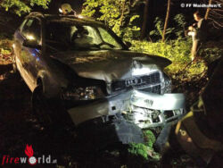 WAIDHOFEN AN DER YBBS (NÖ): Gegen 02:20 Uhr des 17. Mai 2015 wurden die Feuerwehren Wirts, Gaflenz und Waidhofen/Ybbs-Stadt zu einem schweren Verkehrsunfall mit Menschenrettung auf der B121 alarmiert. Ein Lenker kam mit seinem Pkw von der Fahrbahn ab und kam zwischen Bäumen und einer Garage zum Stillstand.