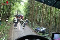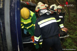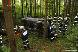 Die Station 4 galt der Katastrophenabwehr. Den Übungsteilnehmer wurde hier ausführlich erklärt wie Sandsäcke korrekt befüllt werden. Das richtige Verlegen und bauen einer Mauer wurde praktisch, mit Bildung einer Menschenkette, sogleich vor Ort erprobt. Ein mit Bienenstöcken beladener Pkw war kurz vor einer Brücke von der Straße abgekommen kam seitlich im Wald zum Liegen. Eine Person lag verletzt im Fahrzeug. Eine weitere Person war abgängig. Übungseinsatzleiter HBI Ernst Größbauer befahl sofort nach erkunden der Lage die Menschenrettung aus dem Fahrzeug und entladen der Bienenstöcke. Weiters wurde eine Ölsperre errichtet und mit den nachalarmierten Kräften eine Suchaktion gestartet. Die vermisste Person konnte rasch gefunden werden und mittels Korbtrage zum Rettungswagen gebracht werden. In weiterer Folge wurde mit Seilwinde und Umlenkrolle das Fahrzeug geborgen. Bei der Übungsnachbesprechung gab es von allen Seiten nur Positives zu hören. Der zuständige Abschnittsbrandinspektor Rudolf Hofer dankte dass dieser Abschnittsübungstag zur großen Zufriedenheit abgearbeitet wurde und Allen für ihre Teilnahme an diesem lehrreichen Tag.
