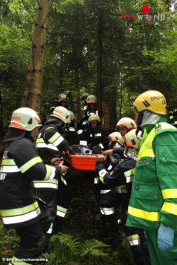 Die Übungsannahme war folgende. In einem Wohnhaus kam es zu einem Brand im Inneren. Ursache und Entstehungsort war unbekannt. Es gab eine starke Rauchentwicklung. Eine Person war noch im Gebäude und eine befand sich bereits am Balkon. Die Aufgaben hier bestanden darin, dass der Atemschutztrupp mit HD-Rohr zur Menschenrettung über das Treppenhaus vordrang. Der Druckbelüfter wurde in Stellung gebracht und die restliche Mannschaft stellte den Leiterweg zur Menschenrettung vom Balkon her. Der Atemschutztrupp übergab den im Rettungstuch liegenden Verletzten, der dann zum Sanitätsplatz getragen wurde.