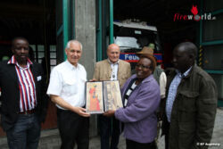 Unter der Leitung von Herrn LTD. BD Frank Habermai er wurden die Besucher durch die Integrierte Leitstelle sowie die Berufsfeuerwehr geführt. Sehr großes Interesse bestand bei der einheitlichen Notrufnummer, die in Kenia eingeführt werden soll. Auch andere Bereiche im Katstrophenschutz verfolgte die Abordnung mit größtem Interesse. Zum Abschluss wurde von der Kenianischen Gouverneurin ein Geschenk von den Kenianischen Feuerwehrkameraden überreicht.