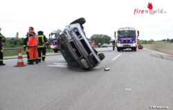 Deutschland: Pkw kommt bei Unfall auf der Autobahn seitlich zu liegen