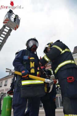 Neben einer Fahrt im Korb der Melker Drehleiter, gab es auch die Möglichkeit den Umgang mit einem Feuerlöscher zu lernen, eine Atemschutzmaske und einen Feuerwehrhelm auszuprobieren, das hydraulische Rettungsgerät zu bedienen und die Hindernisse auf der Bewerbsbahn zu Überwinden.