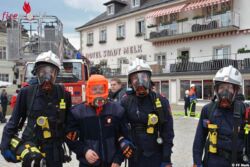 Ein Höhepunkt war die Einsatzübung am Melker Hauptplatz. Brand im Hotel Stadt Melk, zwei Personen werden vermisst. Schnell wurde es laut als die Feuerwehrjugend mit Unterstützung der aktiven Kameraden am Melker Hauptplatz mit den Feuerwehrfahrzeugen eintrafen. Ein Atemschutztrupp ging zur Menschenrettung in den 1 Stock vor und mit der Drehleiter wurde eine Person vom Dachgeschoss gerettet.