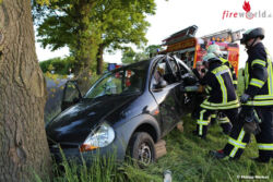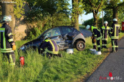 Das Szenario sah einen verunfallten Kleinwagen an einem Straßenbaum vor, bei dem der Fahrer hinter dem Lenkrad eingeklemmt wurde.