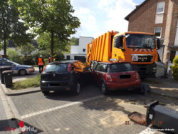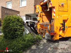 Deutschland: Wegrollender Müll-Lkw ramponiert vier Pkw und zerstört Carport