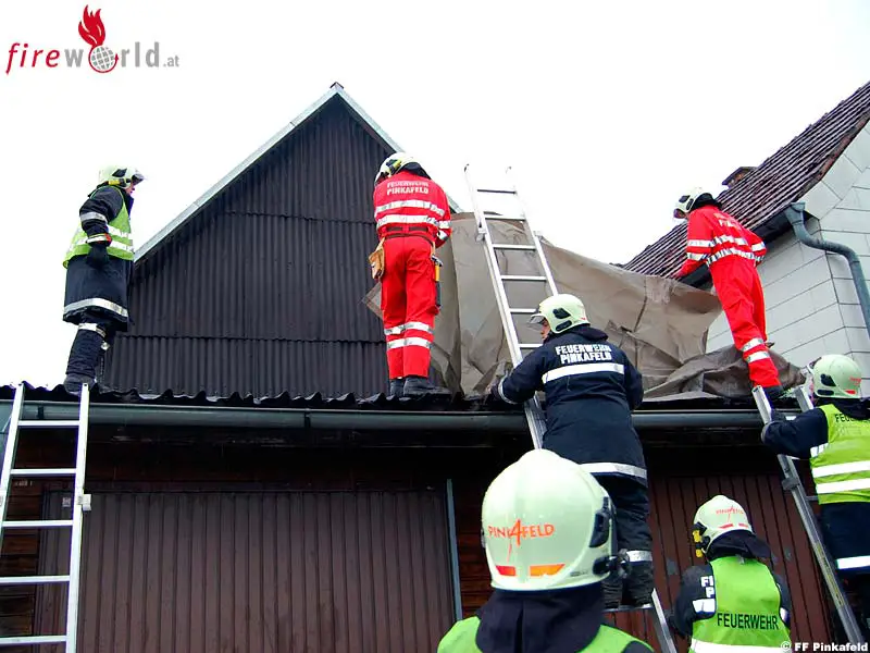 PINKAFELD (BGLD): Am Nachmittag des 22. Mai 2015 wurde die Feuerwehr Pinkafeld gleich zu mehreren Dachsicherungsarbeiten alarmiert.