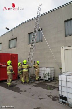 Beübt wurde jenes Szenario, wenn die Drehleiter am Einsatzort mangels Platz nicht zum Einsatz kommen kann. Mittels Schleifkorbtrage und Schiebeleiter wurde eine Personenrettung geprobt. Wichtig war den Ausbildnern auch, dass das sichere Besteigen einer Leiter, auch mit Sicherung einer zu rettenden Person, reibungslos funktioniert.