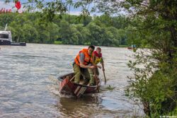Zu Mittag ging es für die Teilnehmer an die Donau zur praktischen Prüfung. Hierbei wurde ein Parcours schnellst möglich abgefahren. Der starke Zug der Donau erschwerte dabei das Fahren in der Zille enorm. Nachdem auch diese Station abgearbeitet war, stand die Meisterklasse am Programm. Hier fahren Zillenfahrer aus Oö. welche bereits in Besitz des Abzeichens in der Stufe Gold sind. BI Michael Moran, AW Bernhard Huemer und HBM Christoph Katherl traten hierbei an.