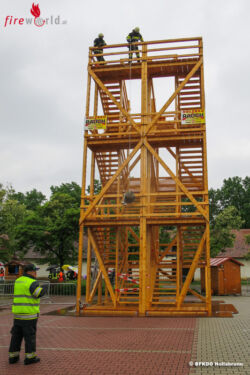 Zunächst heißt es in voller Ausrüstung 11 Stockwerke nach oben und nach unten zu kommen. Bei der nächsten Station muss ein gefüllter B-Schlauch, mit etwas über 100 kg, über eine Strecke von 80 Meter gezogen werden. Danach heißt es mit 15 kg pro Hand drei Stockwerke nach oben zu kommen. Dort müssen nochmal 30 kg per Seil hochgezogen werden, dann geht es wieder mit den 30 kg nach unten. Bei der vierten Station darf das Atemschutzgerät abgelegt werden. Hier muss, nach einigen Hammerschlägen, und einem kleinem Parcours eine 80kg Puppe über 100m getragen werden, danach gilt es noch eine 3 Meter hohe Wand zu überwinden.