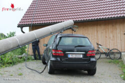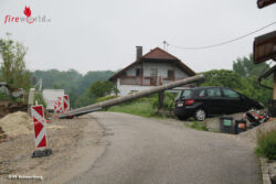 SCHWERTBERG (OÖ): Am Sonntag, den 24. Mai 2015, wurde die Feuerwehr Schwertberg um 08:40 Uhr zu einem umgefallenen Strommast, der den Hinterleitnerweg blockierte, alarmiert. Beim Eintreffen des ersten Fahrzeuges wurde unverzüglich der Gefahrenbereich abgesperrt und die LINZ AG verständigt.