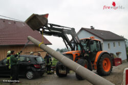 Oö: Feuerwehr Schwertberg entfernt umgestürzten Strommasten