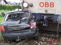 Oö: Pkw in Mauerkirchen von Zug gerammt – Kollision verlief glimpflich